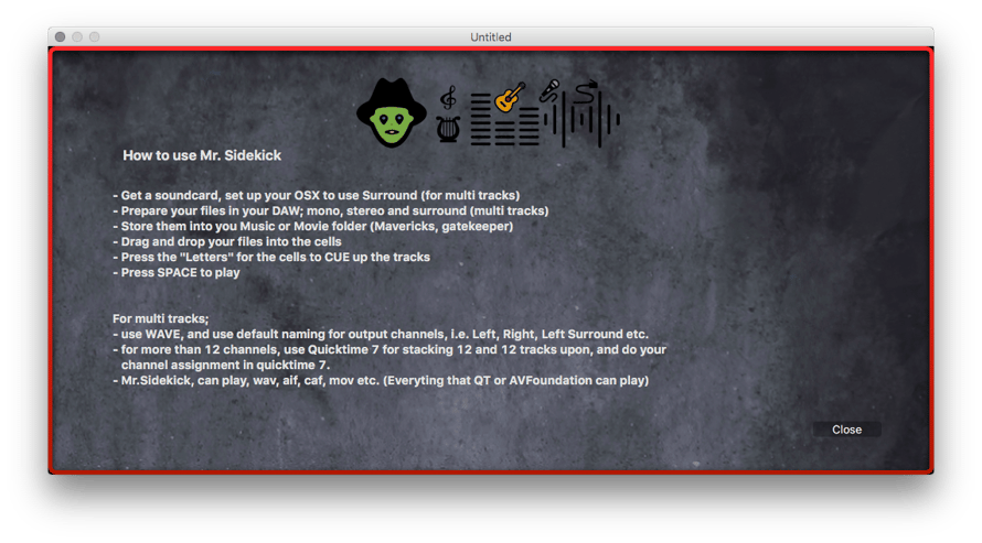 Important: Because of the gatekeeper system on OS X, your files need to be in the your music og movie folder... otherwise you'll get an error telling you failed to play... this is because gatekeeper will not give access to files outside music and movie if they have not been chosen manually from within the program... But the music folder is safe to use....